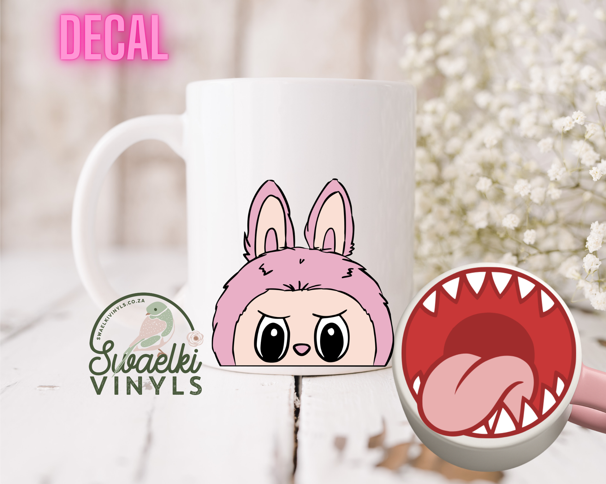 UV DTF Decal - Pink Labubu Mug Mouth Sticker
